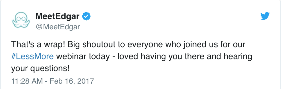 يعمل هذا على الترويج للحدث الخاص بك أثناء حدوثه (مما سيجذب المزيد من الاهتمام إليك وعلامتك التجارية ويساعد في بناء تلك العلاقات) مع إشراك جمهور أوسع في الوقت نفسه بخلاف الحاضرين في ندوتك على الويب.