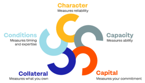 - الشروط: يتضمن ذلك تقييم الظروف التي قد تؤثر على قدرتك على سداد القرض. سينظر المقرضون عادةً في كيفية تخطيطك لاستخدام الأموال ، وتوقعات الصناعة ، ومسار الاقتصاد الكلي.
