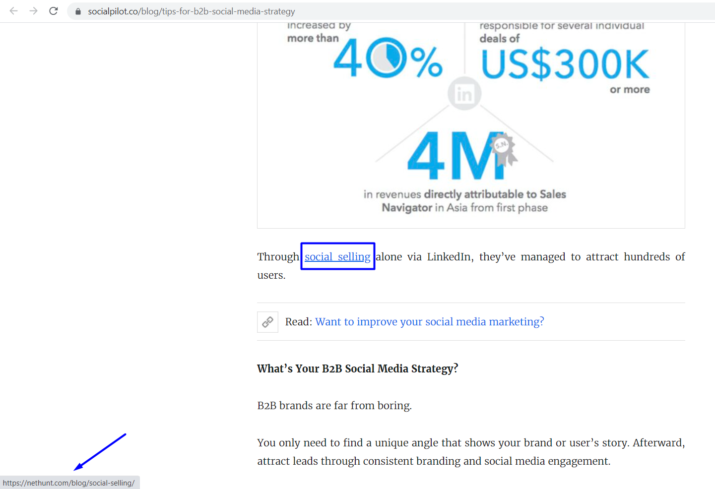 على سبيل المثال ، مقالة اتجاهات المبيعات لعام 2021 هي آلة بناء روابط عضوية. يبدو أن معظم المقالات الأخرى رفيعة المستوى تغطي "الاتجاهات" نفسها ، الفضفاضة ، والتي عفا عليها الزمن في كثير من الأحيان. لقد اتخذنا نهجًا جديدًا بأفكار أصلية ، واكتسب زخمًا مع قرائنا ، وطورنا الكثير من الروابط الخلفية ، وحتى تمت مشاركته على نطاق واسع نسبيًا على وسائل التواصل الاجتماعي.