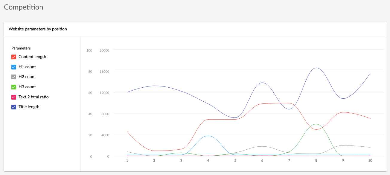 - لاكتشاف الارتباطات بين تصنيفات موقع الويب في SERPs والمقاييس مثل عدد الرؤوس وطول النص ونسبة النص إلى الشفرة ومحتوى العناوين والعناوين الوصفية ؛