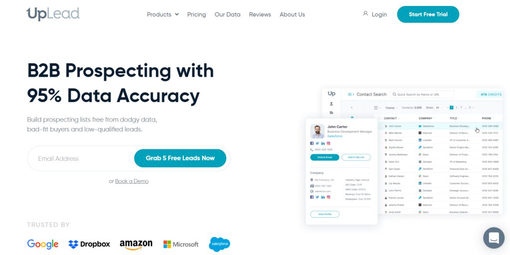 UpLead عبارة عن منصة ذكاء مبيعات B2B قوية وموثوقة تتيح لك التواصل مع العملاء المحتملين المؤهلين تأهيلاً عاليًا بسرعة وسهولة. تتيح لك ميزاته المثيرة قضاء المزيد من الوقت في البيع للعملاء المحتملين ووقت أقل في البحث عنها.