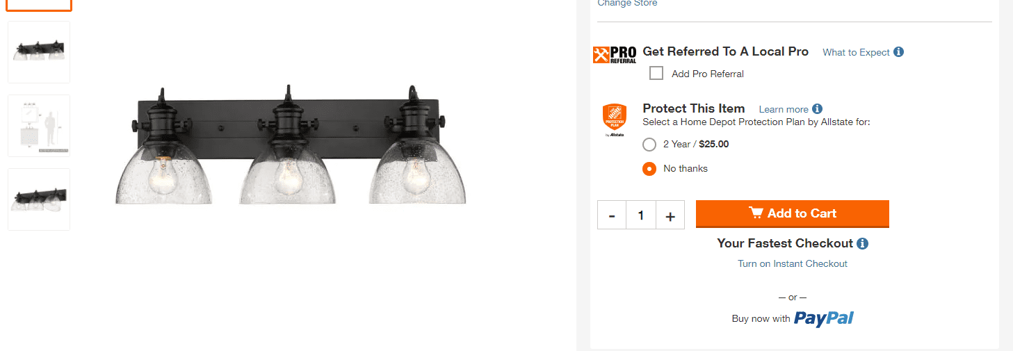 أعلاه ، تقدم Home Depot كلاً من خطة الحماية وخدمات التقطير كإضافات محتملة. هذا مثال على البيع التكميلي ، لأن العناصر مضافة إلى العنصر الأصلي.