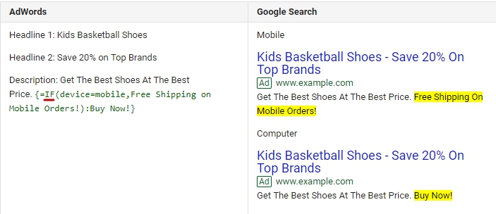 Die Verwendung des logischen Operators IF kann dazu beitragen, Ihre Anzeigen besser auf einen Endnutzer abzustimmen. Mit seiner Hilfe können Sie Anzeigenkopien für Besitzer von Mobilgeräten und für Benutzer aus Ihren Listen und Zielgruppen dynamisch ändern.