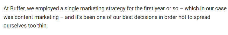 Zu Beginn von Buffer suchte die Marke nach einer Marketingstrategie und hielt am One Thing and Focus-Prinzip fest.