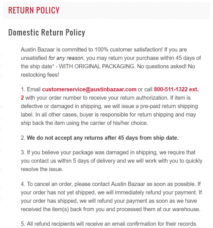Sagen Sie den Kunden, was sie von Ihnen erwarten können: AustinBazaar Rückgaberecht