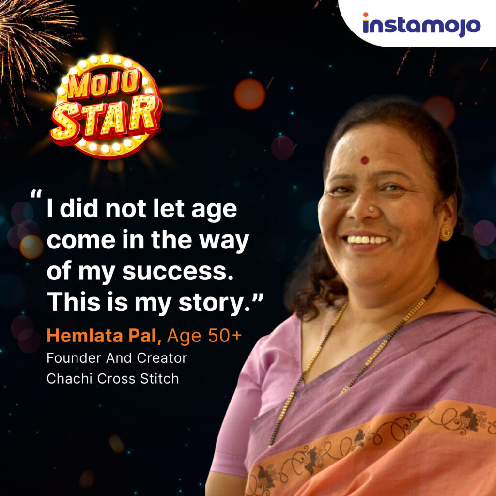 Eine weitere Geschichte über das Alter, das vor Leidenschaft keine Chance hat. Chachi Cross Stich ist ein Online-Shop auf Instamojo, der von Hemlata Pal gegründet wurde, einer über 50-jährigen Frau, die ihre Designs und ihre Kreativität mit der Welt teilen möchte.