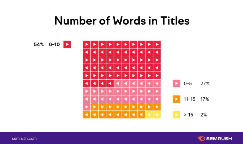 Eine aktuelle SEMrush-Studie ergab, dass 54 % der leistungsstarken Videos durchschnittlich 8 Wörter im Titel haben: