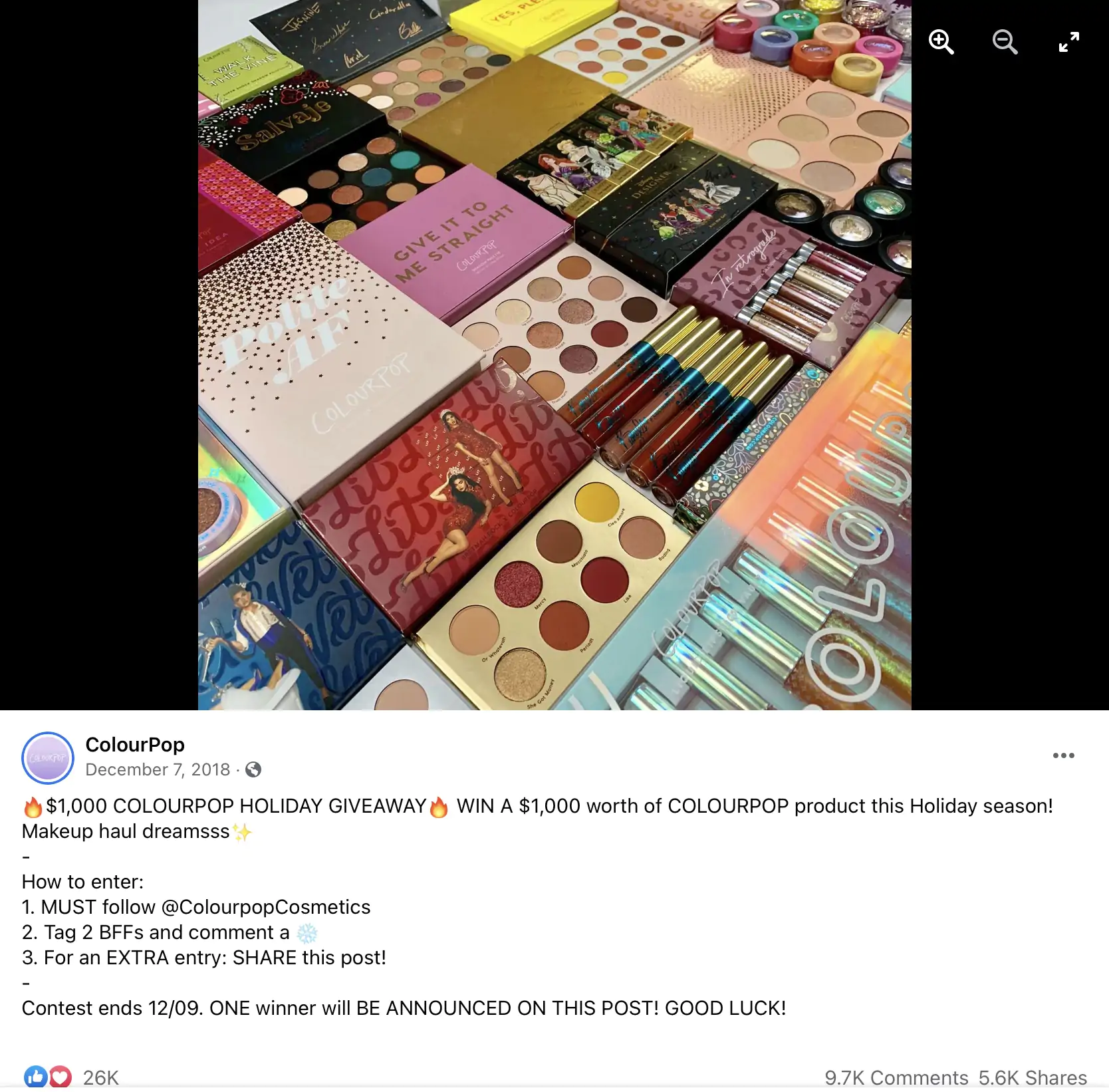 2. ColourPop: organiza un sorteo en Facebook