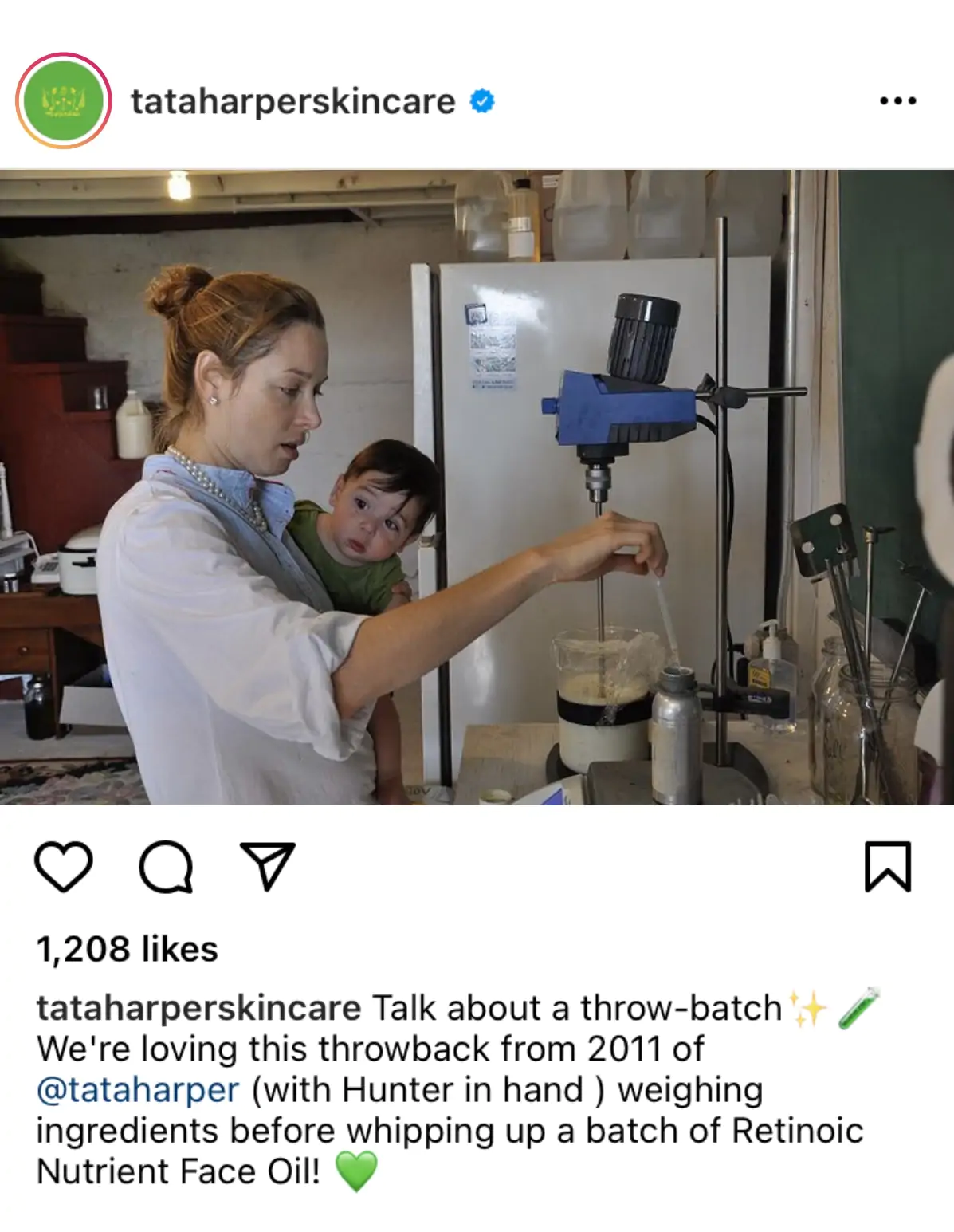 También verás cómo la compañía crea productos, incluida una foto sin pulir de la fundadora sosteniendo a su hijo mientras mezcla un lote de aceite facial. Este enfoque personal se extiende también a sus obsequios ocasionales.