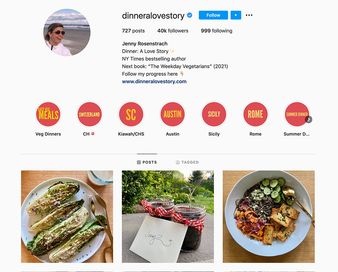 Jenny Rosenstrach es una escritora gastronómica profesional, pero su misión personal era conseguir una cena familiar en la mesa todas las noches, sin importar lo ocupada que estuviera y lo exigente que fuera su familia. Su búsqueda se convirtió en un blog y ahora es una influenciadora de las redes sociales con 39.600 seguidores en Instagram. Continúa cumpliendo su misión y también lleva un diario de cada cena que ha preparado y servido a su familia desde 1998.