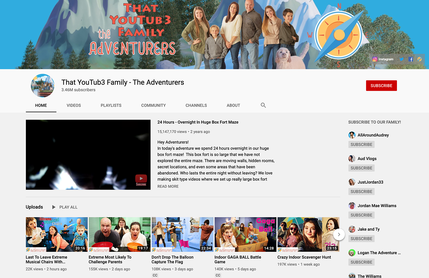 Esta familia se describe a sí misma como divertida, loca y amorosa. La familia de seis, cada uno tiene su propio canal de YouTube. Aunque sus aventuras giran en torno a su estilo de vida y tiempo en familia, gran parte se centra en la cocina familiar. Se han enfrentado a desafíos de cocina de $10 (niños contra niñas), desafíos de mejores chefs, pasteles de embudo horneados, sándwiches preparados y fideos picantes. Son tan populares que se asociaron con HelloFresh. Además de sus propios canales, también tienen un canal llamado That YouTub3 Family: The Adventurers en YouTube, y tienen un total de 3,43 millones de suscriptores.