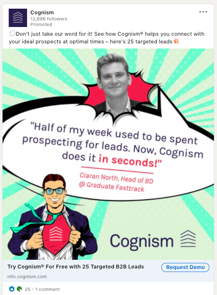 Aquí hay un ejemplo de un anuncio donde Cognism usó un testimonio real: