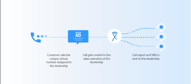 Por ejemplo, cuando un cliente llama al concesionario después de ver un anuncio impreso, su llamada se captura en el número virtual vinculado a esta campaña en particular. Ahora mide la cantidad de llamadas únicas recibidas de esta campaña en particular. También registra todas las llamadas perdidas en este número, por lo que es muy fácil devolver la llamada a todos esos clientes. Si desea realizar un seguimiento de una campaña de televisión que se ejecuta a las 8 p. m., simplemente asigne un número virtual para esta campaña. Cuando entran llamadas a este número virtual, sabemos exactamente cuánto ruido ha creado.