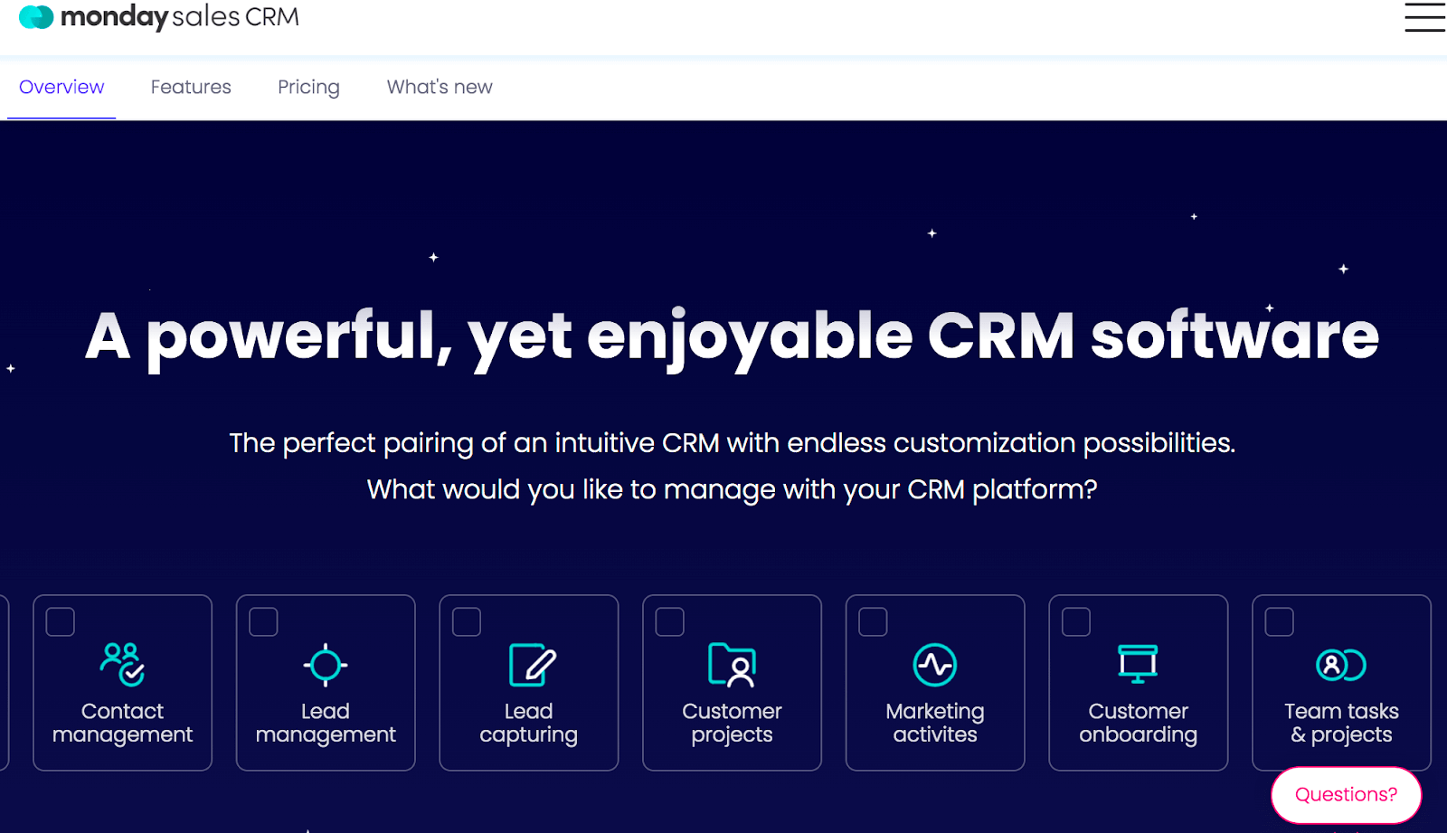 No se sorprenda si ha visto aparecer Monday CRM recientemente. Esta suite CRM ha estado causando sensación en la industria estos últimos meses y hay una buena razón para ello. Monday.com se destaca como una innovadora plataforma SaaS CRM, gracias a su capacidad para integrar las operaciones y recursos de ventas de su empresa en un ecosistema cohesivo. Este ecosistema se conoce como Monday Work OS.