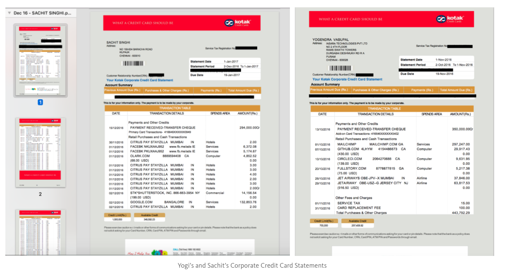 Además, comparte los extractos de las tarjetas de crédito corporativas de los fundadores para justificar los pagos realizados desde las cuentas de la empresa a su nombre. Las declaraciones muestran claramente que las tarjetas se usaron para la facturación regular de software SaaS para servicios como Github, AWS, JIRA, etc.