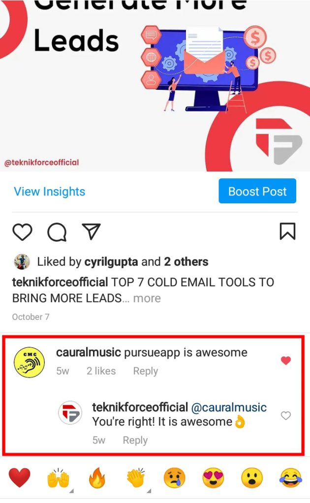 Répondez à tous les commentaires sur vos publications Instagram avec un j'aime ou avec un commentaire.
