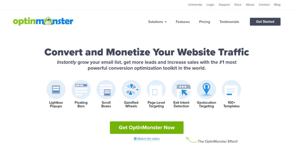 OptinMonster est un logiciel de marketing spécialement conçu pour générer de nouveaux prospects. Le modèle de glisser-déposer sur OptinMonster vous permet de créer de superbes lightboxes, pop-ups et pages de destination pour capturer de nouveaux prospects.