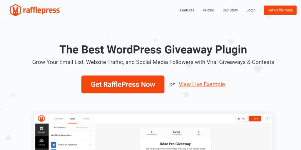 RafflePress est l'un des meilleurs plugins de cadeaux pour WordPress. Vous pouvez créer des concours en ligne divertissants pour votre public grâce à ses modèles de cadeaux viraux et à son générateur de cadeaux par glisser-déposer.