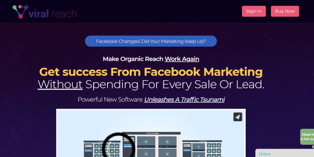 Viral Reach est une plateforme de marketing Facebook tout compris où vous pouvez gérer tout votre contenu de manière entièrement automatisée. Ce logiciel se concentre principalement sur l'apport de trafic organique avec du contenu viral comme des textes, des vidéos, des graphiques, des liens, etc.