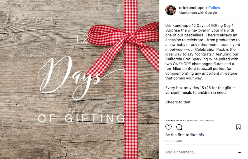 Les vacances sont synonymes de sourires et de création d'une expérience de « bien-être ». Alors, quel meilleur moment pour organiser une campagne pour une cause sociale ? En fait, certains des hashtags les plus populaires utilisés dans les messages de vacances sont #gifts, #serve, #celebrate #dogood #feedthepoor, et plus encore ! Par conséquent, il va sans dire que vous pouvez stimuler l'engagement en proposant de faire un acte de bienfaisance en échange d'un engagement. Par exemple, donnez une boîte de nourriture aux enfants pour chaque personne qui participe à votre campagne.