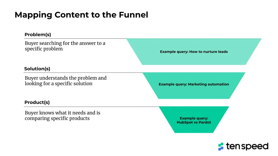 Avec le contenu en bas de l'entonnoir, vous ne vous adressez plus à un large public qui peut ou non avoir le problème que vous résolvez - ou même les personnes qui ont initié une forme de contact avec votre marque SaaS.
