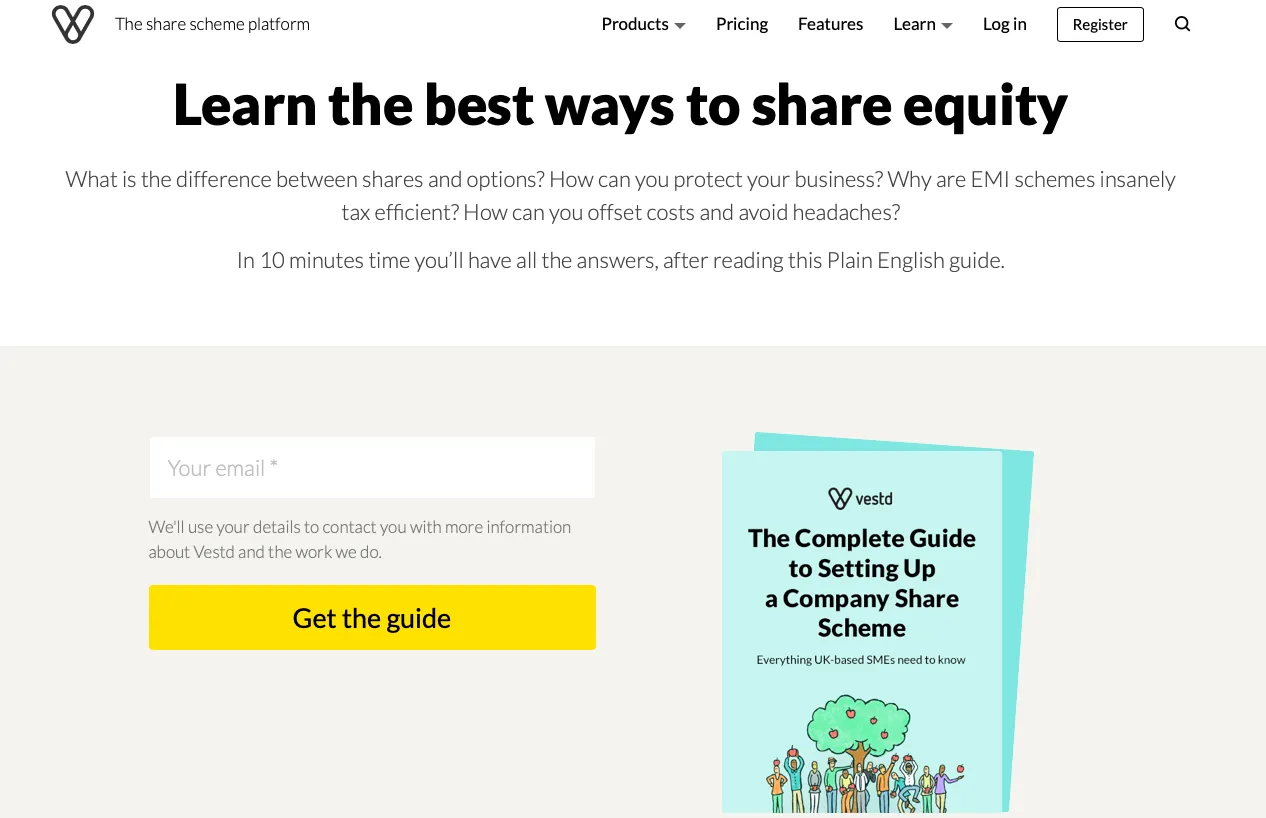 En tant que marque SaaS, vous proposez probablement différents plans pour votre produit avec différents ensembles de fonctionnalités. Investissez pour en faire une page très visuelle avec des comparaisons de fonctionnalités, des prix, des FAQ et toutes les offres de mise à niveau clairement écrites.