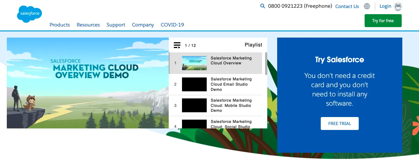 Cela prend la forme d'une vidéo explicative ou d'un parcours interactif qui donne à vos clients une introduction au fonctionnement de votre produit. En d'autres termes, vous leur montrez sur quoi cliquer, où et quand. Salesforce , par exemple, a créé une vidéo de démonstration de produit amusante et créative pour son marketing.
