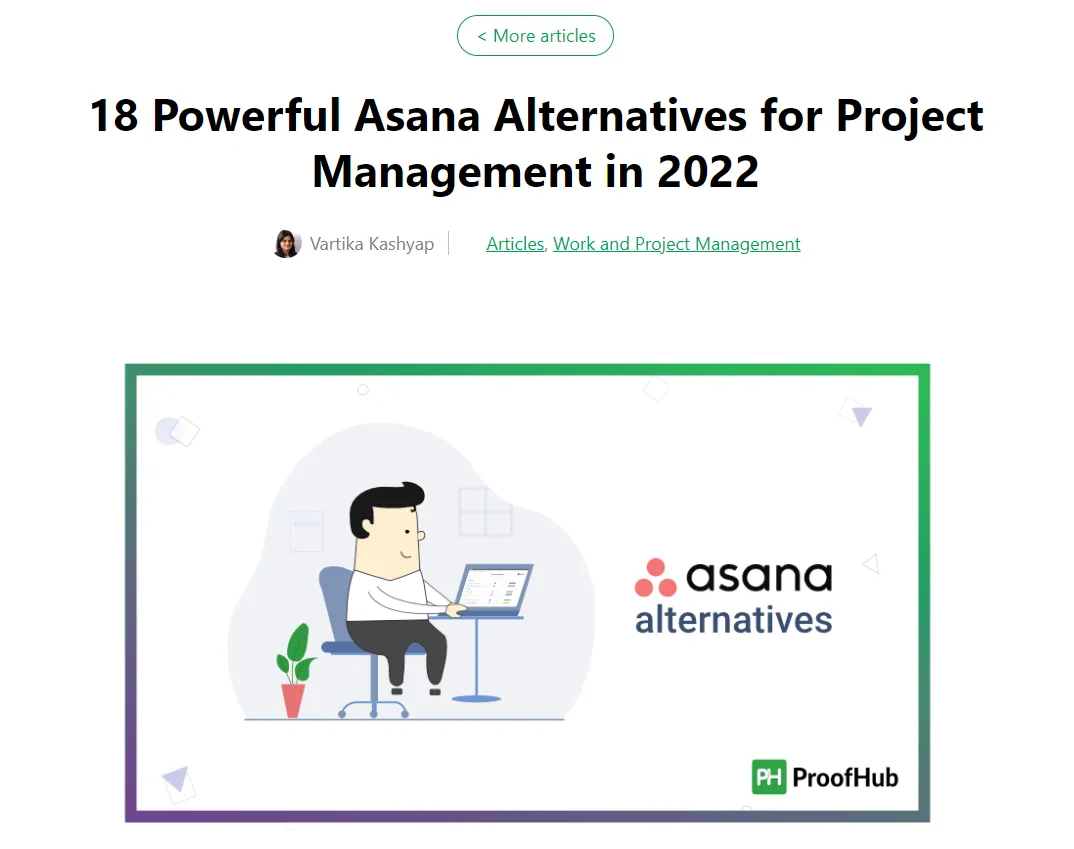 ProofHub propose également des pages de solutions dédiées détaillant les fonctionnalités et les avantages du produit pour différents types d'équipes et de flux de travail, ainsi que des articles de type "X alternatives" (comme celui sur les alternatives Asana ) qui incitent les prospects à s'inscrire pour leur essai gratuit.