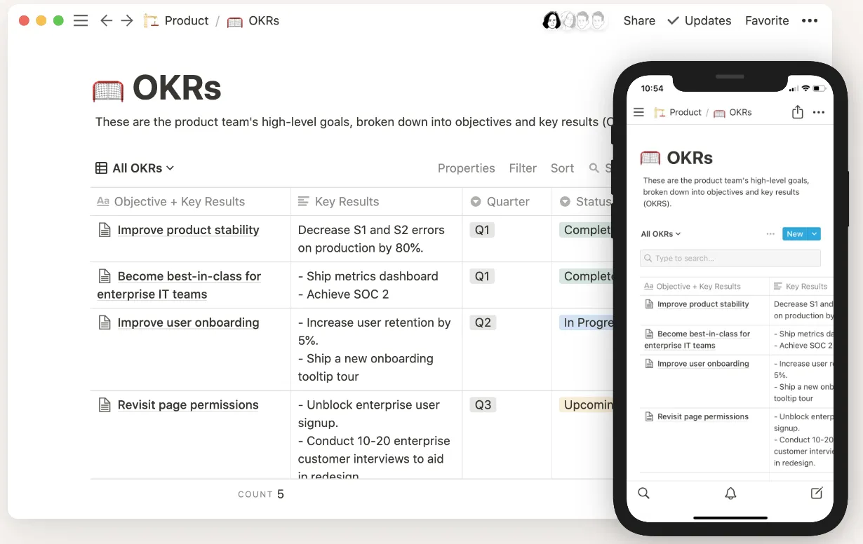 L'application de prise de notes préférée de millions d'utilisateurs dans le monde, Notion sert également d'outil de gestion de projet minimaliste qui aide vos équipes à collaborer, à planifier l'avenir et à rester super organisé dans le présent.