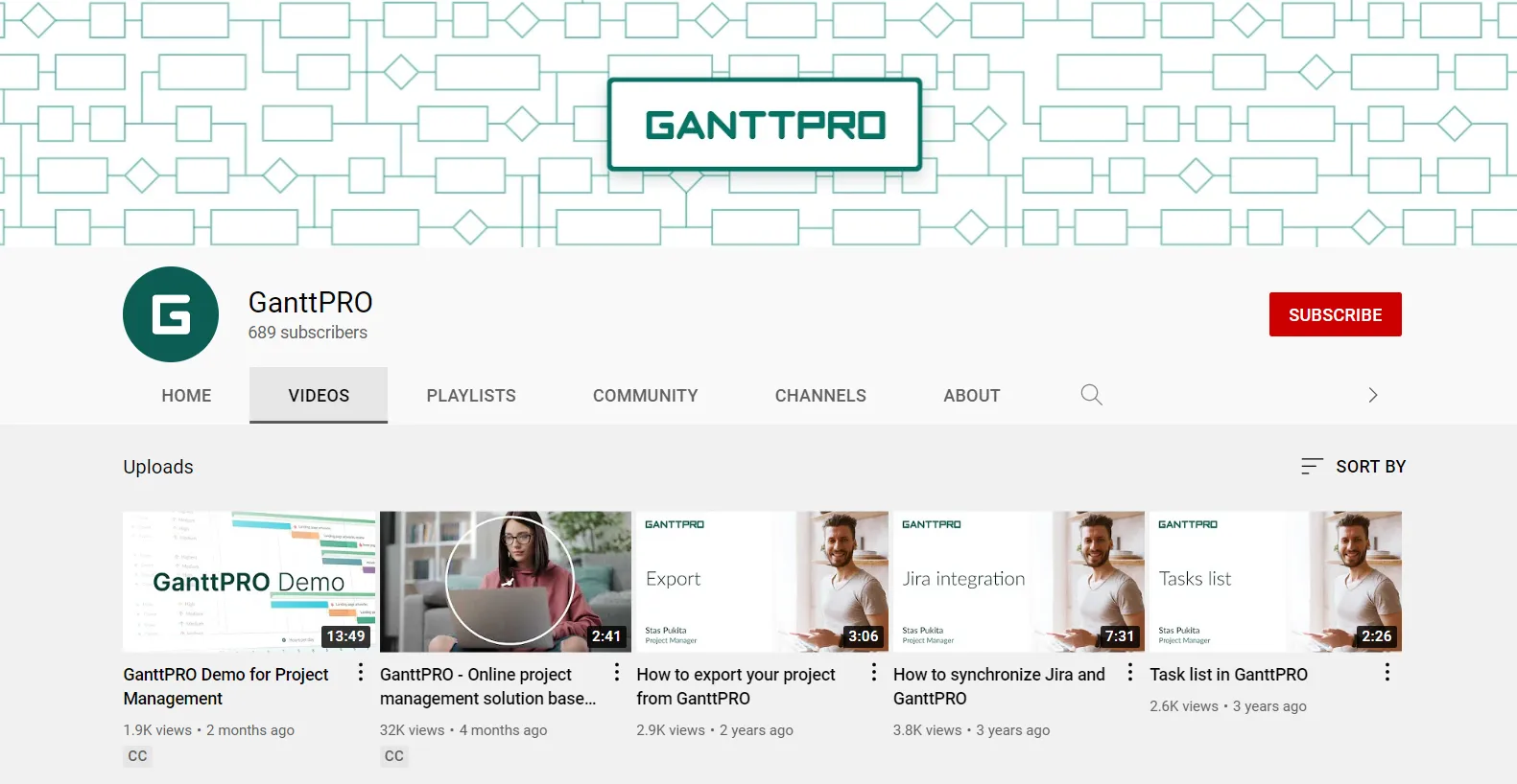 Le marketing de contenu de GanttPro comprend un blog , une chaîne YouTube et des témoignages de clients , couvrant des sujets tels que divers sujets tels que la gestion de projet, la productivité, la gestion d'équipe, l'agilité, les mises à jour, les conseils et les didacticiels de projet Microsoft.