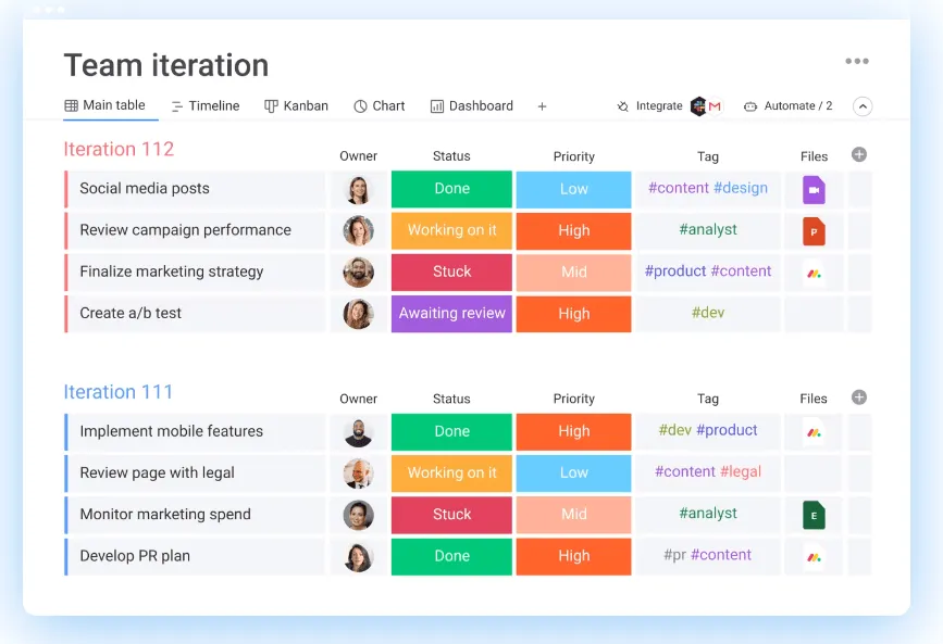 Avec monday.com, vous pouvez créer des flux de travail personnalisés pour mieux tout gérer, de la conception et du développement aux RH et aux opérations. Centralisez tous vos projets, processus, outils et fichiers dans une seule source de vérité.