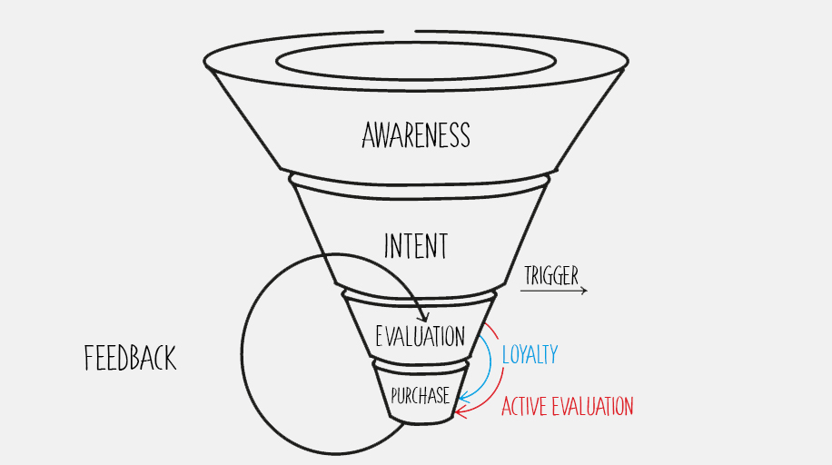Gardez à l'esprit que vos clients potentiels interagissent avec votre entreprise à plusieurs points de contact du parcours de décision client. Ainsi, le parcours d'un client vers un achat devient plus compliqué et ressemble moins à un entonnoir de vente conventionnel :