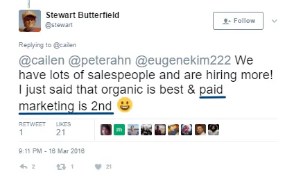 C'est l'une des tactiques de marketing préférées de Butterfield, et pour cause. 8 000 personnes se sont inscrites à Slack le premier jour du lancement. Ce nombre a presque doublé au cours des deux semaines suivantes.