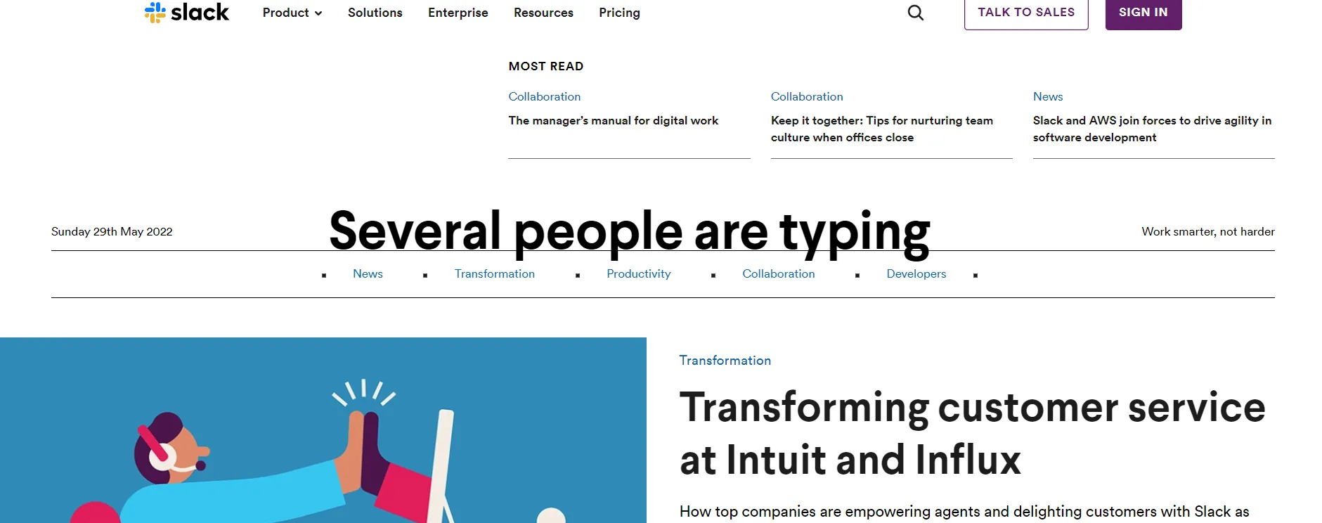 f) Blog de Slack – Plusieurs personnes sont en train de taper