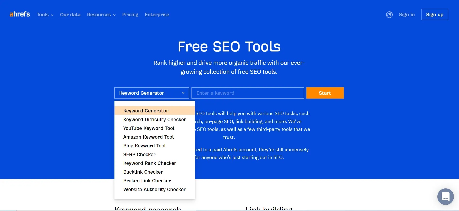 Ahrefs propose une multitude d'outils de référencement gratuits avec lesquels les gens peuvent s'engager. Fait intéressant, chaque outil cible un mot-clé avec un potentiel de trafic de recherche.