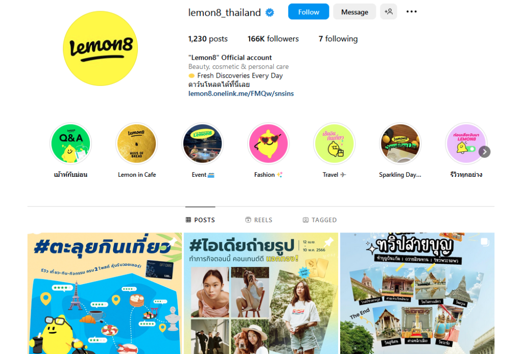 Les pages officielles de Lemon8 sur Instagram pour chaque pays publient du contenu régional. La marque organise également des campagnes spécifiques pour chaque région. Cela a aidé l'application à gagner en popularité grâce aux plateformes de médias sociaux existantes.