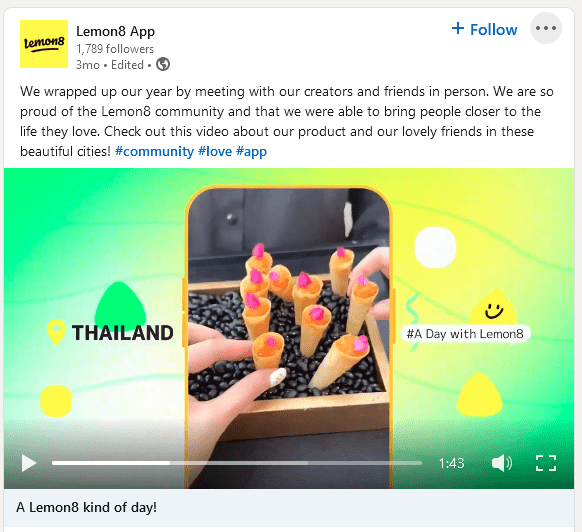 Sur Instagram, par exemple, vous trouverez du contenu informatif sur la façon d'utiliser l'application, comment explorer des fonctionnalités spécifiques et d'autres détails. Et il y a des publications tendance repartagées à partir de l'application Lemon8 étiquetant les créateurs respectifs similaires à ce que TikTok fait sur sa page Instagram. Sur LinkedIn, la société partage des informations sur les jalons et événements importants.