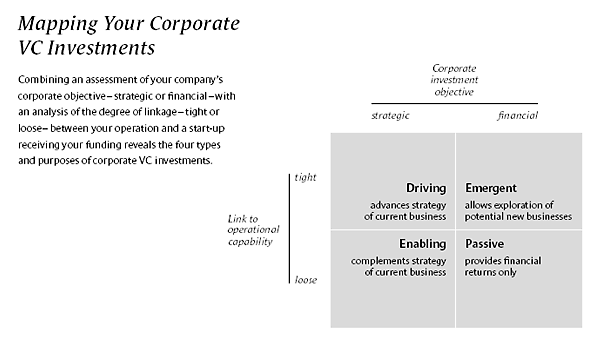 Les bras de capital-risque des entreprises ont les compétences et la possibilité d'exploiter les ressources de leurs grandes entreprises respectives même s'ils essaient de fonctionner avec la rapidité et l'agilité qui sont une condition préalable pour entrer dans le cercle des investisseurs de démarrage. Et tandis que leur direction générale s'inquiète des risques inhérents aux relations avec les startups, Mark Zuckerberg leur dit : « Le plus grand risque est de ne prendre aucun risque… Dans un monde qui change très rapidement, la seule stratégie qui est garantie d'échouer est sans prendre de risques. »