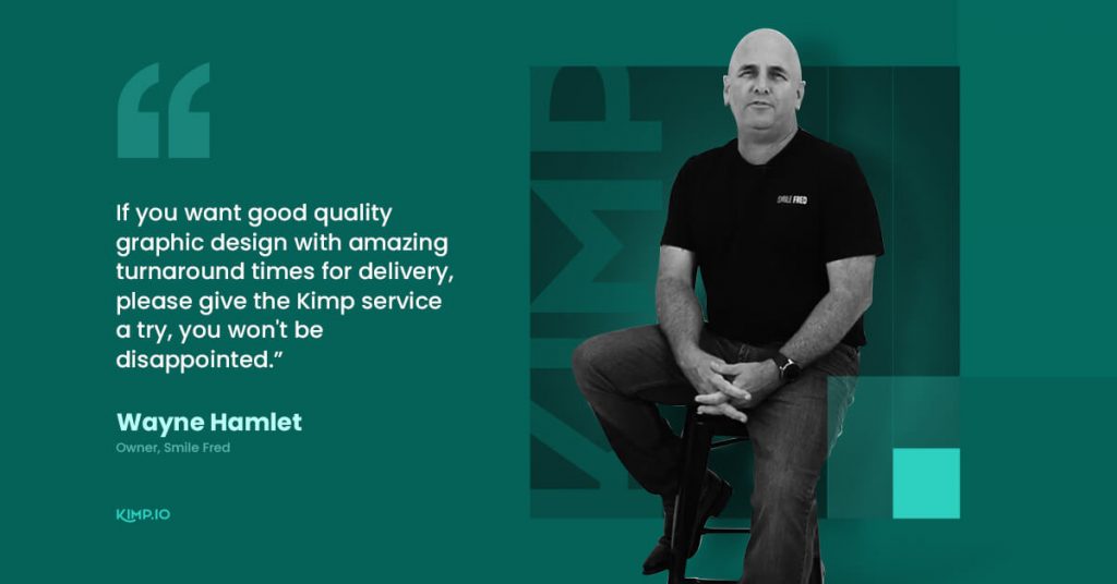 Apprenez-en plus sur notre incroyable client Wayne Hamlet et sur son entreprise créative et aimable Smile Fred, dans notre étude de cas Kimp.