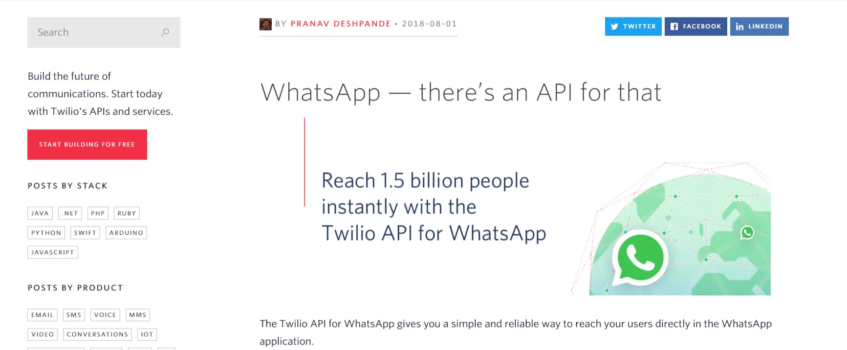 Découvrez comment Twilio parle de sa nouvelle fonctionnalité - l'API Twilio pour WhatsApp - dans un article de blog.