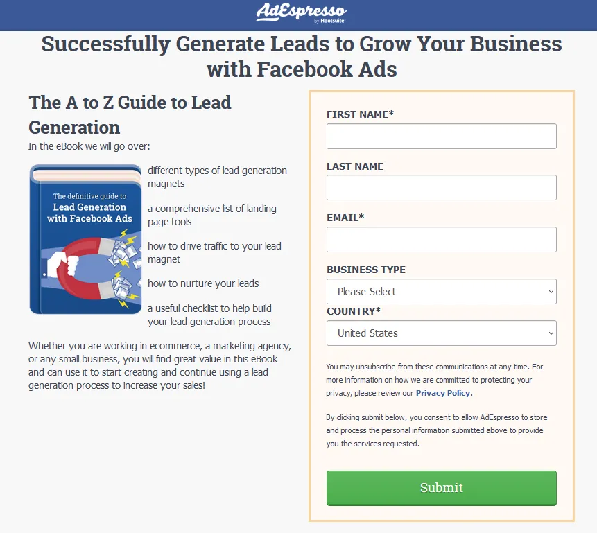 Par exemple, Adespresso utilise cet eBook pour créer sa liste de diffusion.