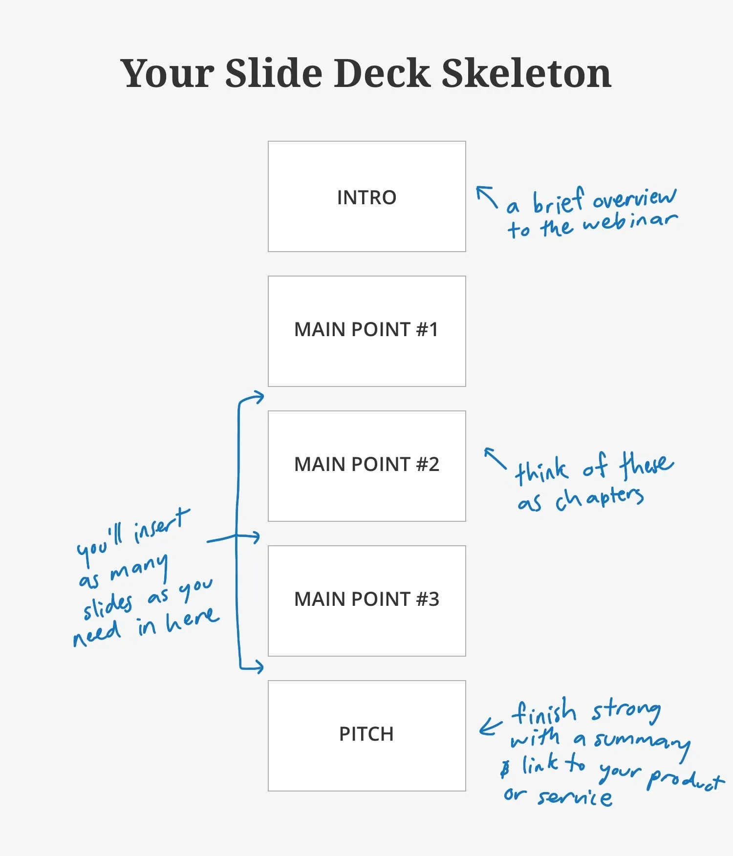 Vous devez préparer des scripts et des decks qui ajoutent véritablement de la valeur et fournissent à votre public des plats à emporter exploitables, vous établissant comme un expert dans le domaine. Les directives suivantes vous aideront à créer votre contenu :