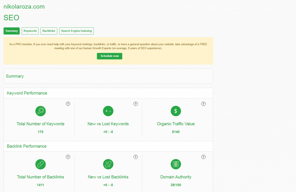 Diib Digital propose également un service d'abonnement appelé Diib Pro, qui vous permet de suivre l'autorité de domaine de votre site Web au fil du temps. Le suivi avec Diib est un excellent moyen de voir comment vos efforts affectent votre DA et de maîtriser le référencement de votre site Web.