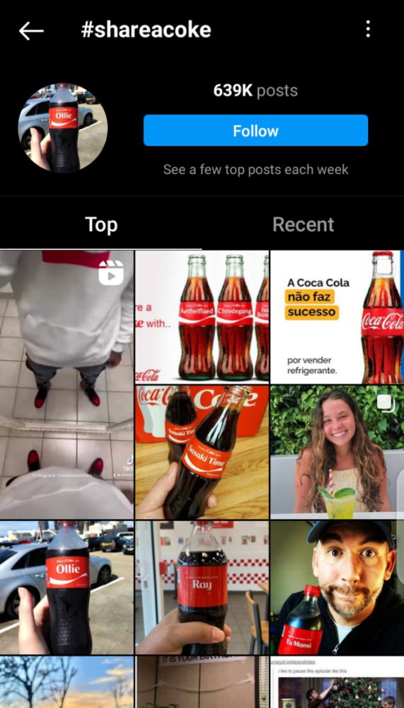 Merek seperti Red Bull dan Coca-Cola menggunakan teknik ini secara efektif. Tagar Red Bull #itgivesyouwings telah digunakan di lebih dari 14.000 postingan. Sementara itu, kampanye #shareacoke Coca-Cola telah mengumpulkan lebih dari 600.000 postingan.