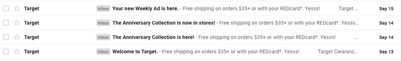 Target menemukan alasan berbeda untuk mengirimi saya email empat kali dalam tiga hari pertama.