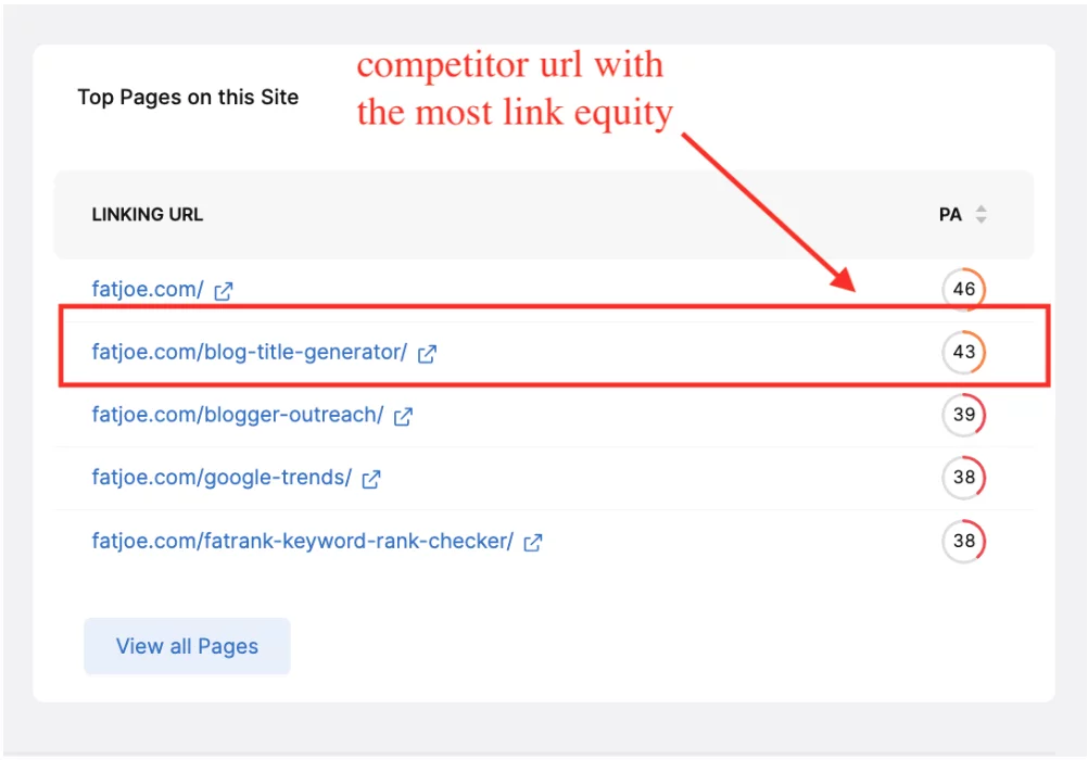 Misalnya, saya dapat menggunakan peneliti backlink untuk mengidentifikasi halaman web pesaing saya yang memiliki backlink paling banyak.