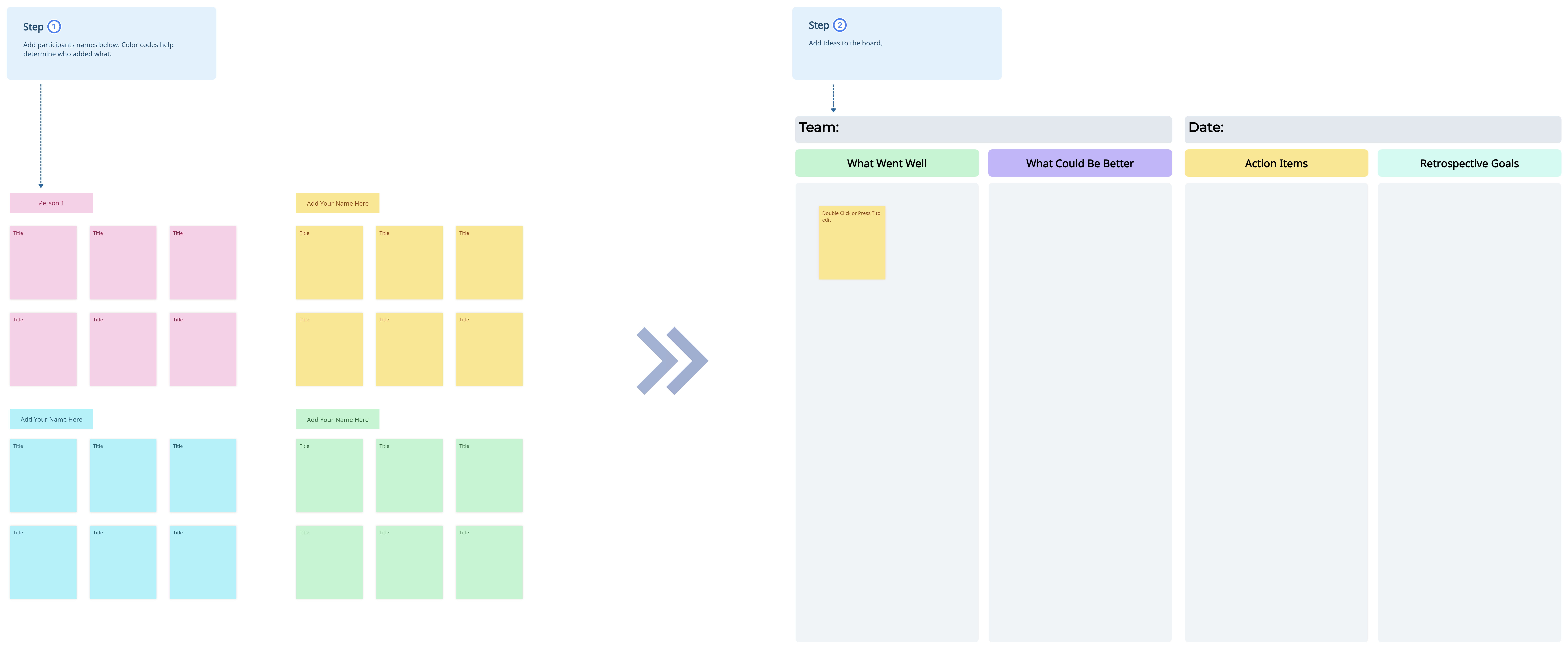 - Kumpulkan Wawasan: Gunakan templat retrospektif Sprint untuk menangkap umpan balik dan wawasan dari anggota tim. Dorong semua orang untuk berkontribusi dengan merefleksikan apa yang berjalan dengan baik selama sprint dan area apa yang perlu ditingkatkan.