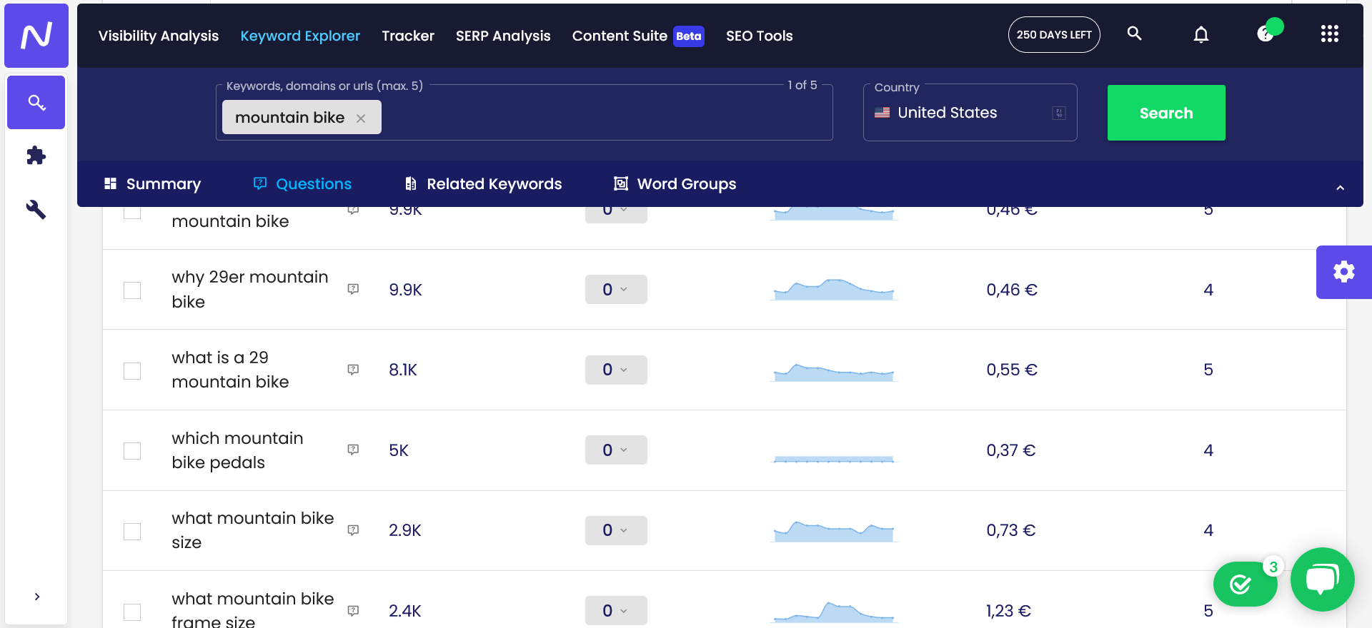 Puoi controllare le parole chiave per il tuo sito e per i siti dei tuoi concorrenti nell'applicazione Senuto. Utilizza i moduli Analisi visibilità ed Esplora parole chiave.