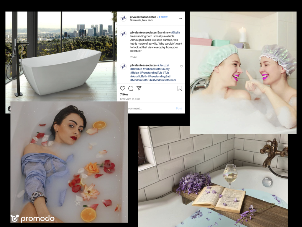 Allo stesso tempo, una regola che dovrai ricordare è "prima il contenuto", il che significa prima di entrare con i tuoi omaggi, assicurati che i tuoi contenuti siano abbastanza creativi e vivaci. Ciò è particolarmente rilevante se produci o vendi un prodotto che non è naturalmente attraente, almeno secondo le misure di Instagram. Torniamo alle vasche da bagno.