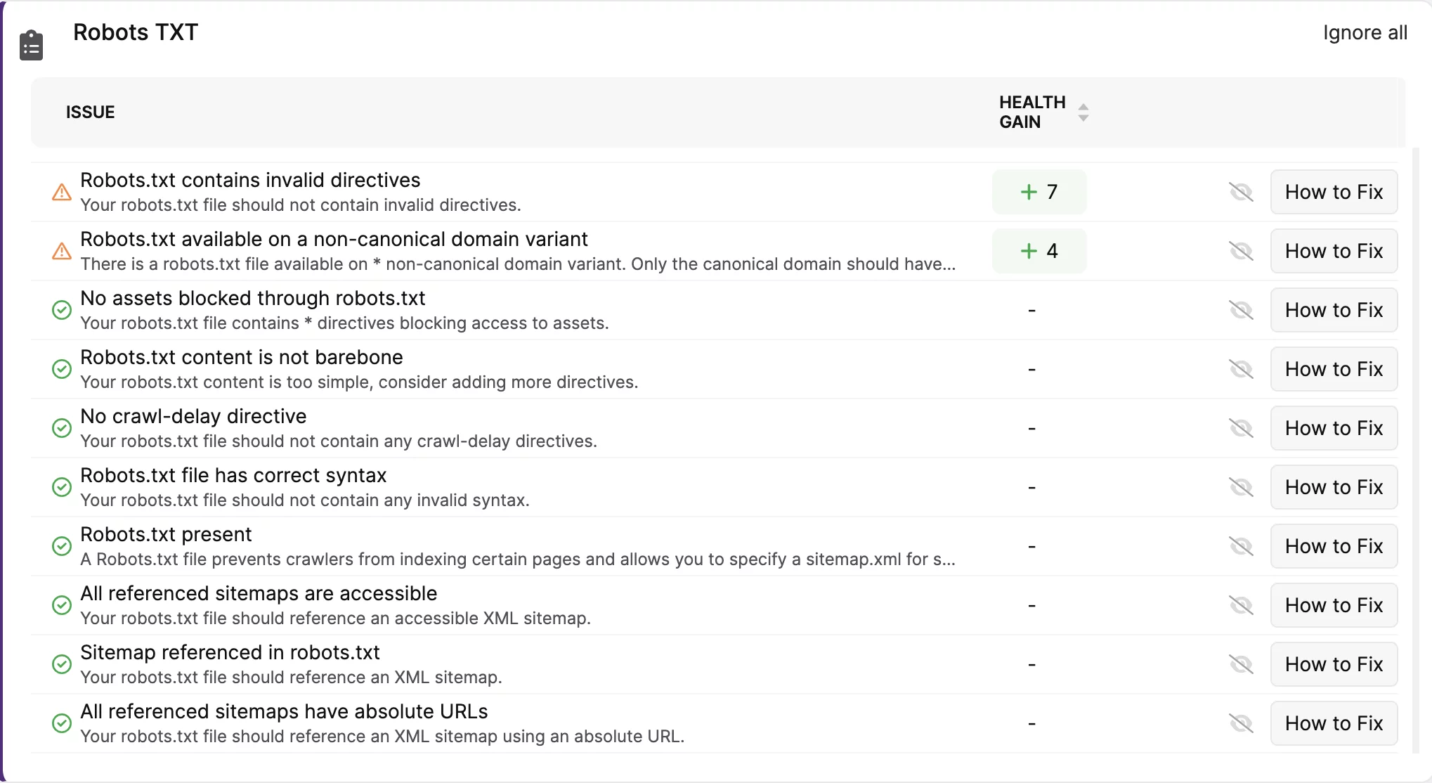 Questi problemi verranno identificati anche nel rapporto di verifica del sito se sono presenti sul tuo sito web.